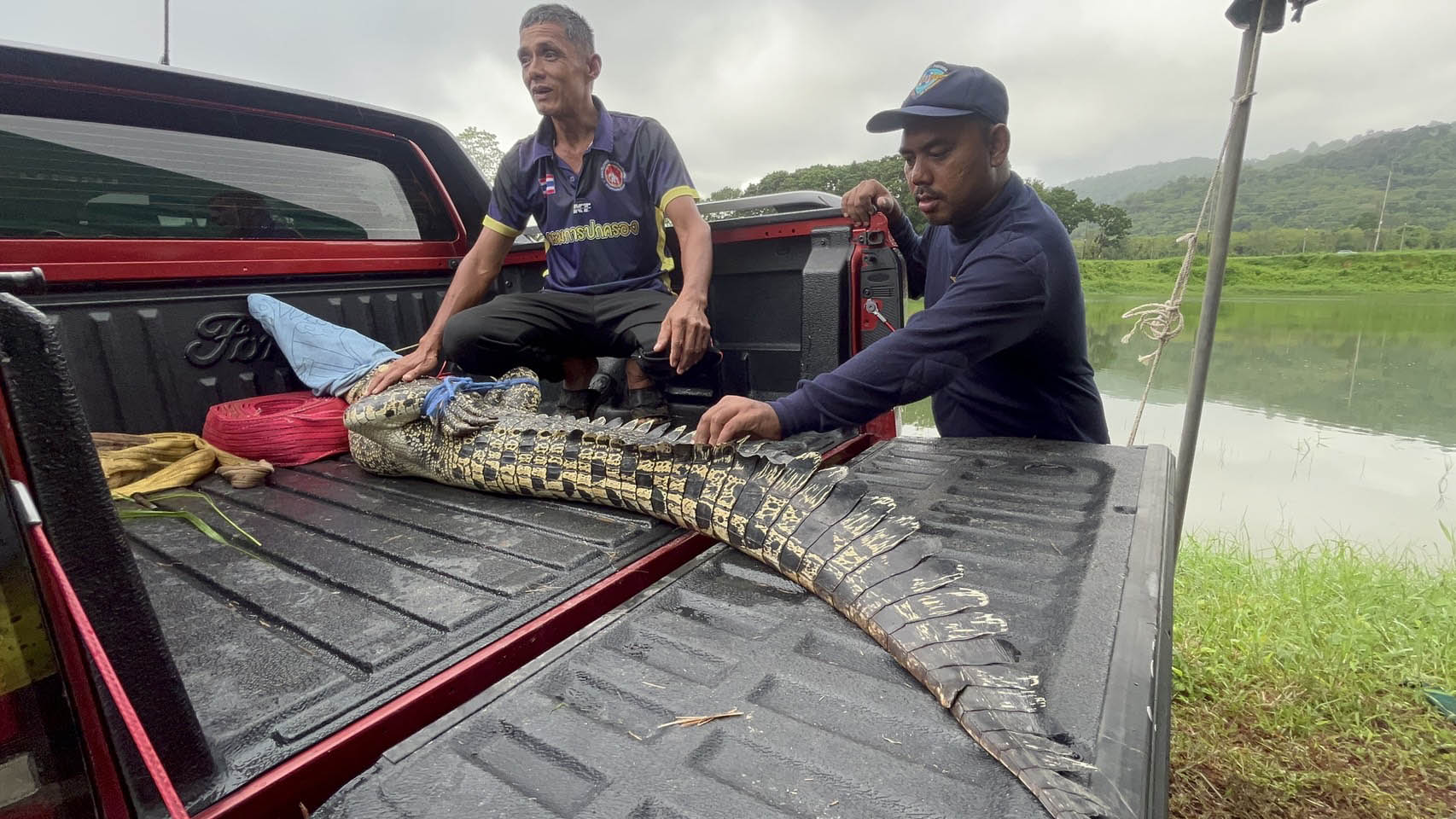 คืบ!จับจระเข้น้ำเค็มใช้ความพยายาม6วัน ซุ่มล้อมจับสำเร็จยาว2เมตรนน.70กก.