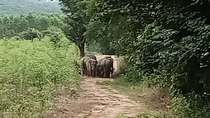 โขลงช้างป่าทับลาน20ตัวบุกปล้นไร่มันฯ ชุดจิตอาสาเร่งผลักดันกลับคืนเข้าป่า