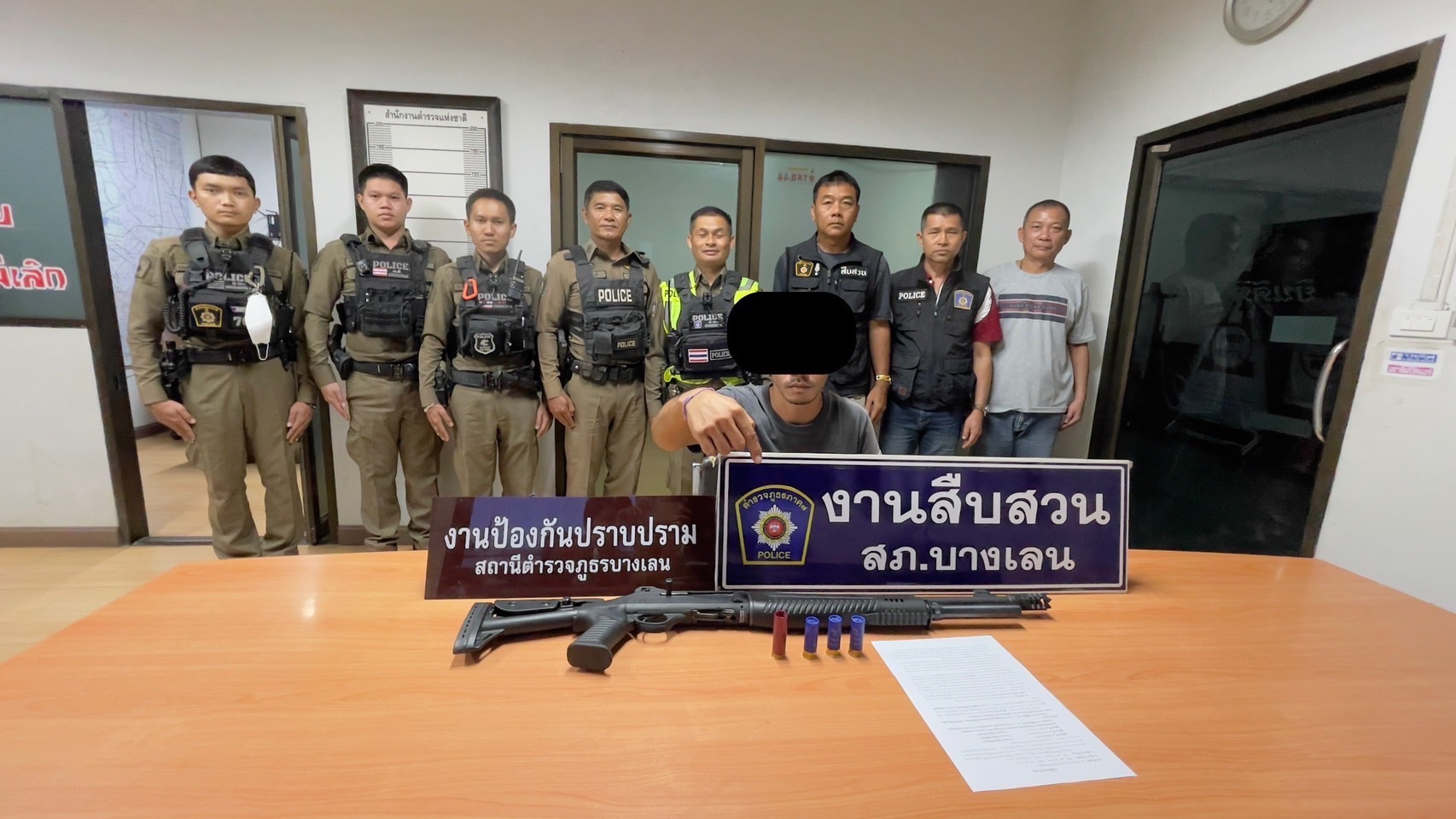 ตร.บางเลนรวบร.ต.อ.ปลอมพร้อมชุดตร. ค้นตัวเจอปืนและยาบ้าแถมมีหมายจับอีก