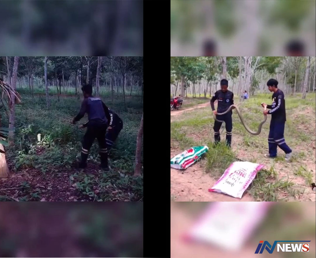 จงอางยักษ์ยึดสวนยางชาวบ้านไม่กล้า กรีดยางทีมอสรพิษฯต้องมาจับ