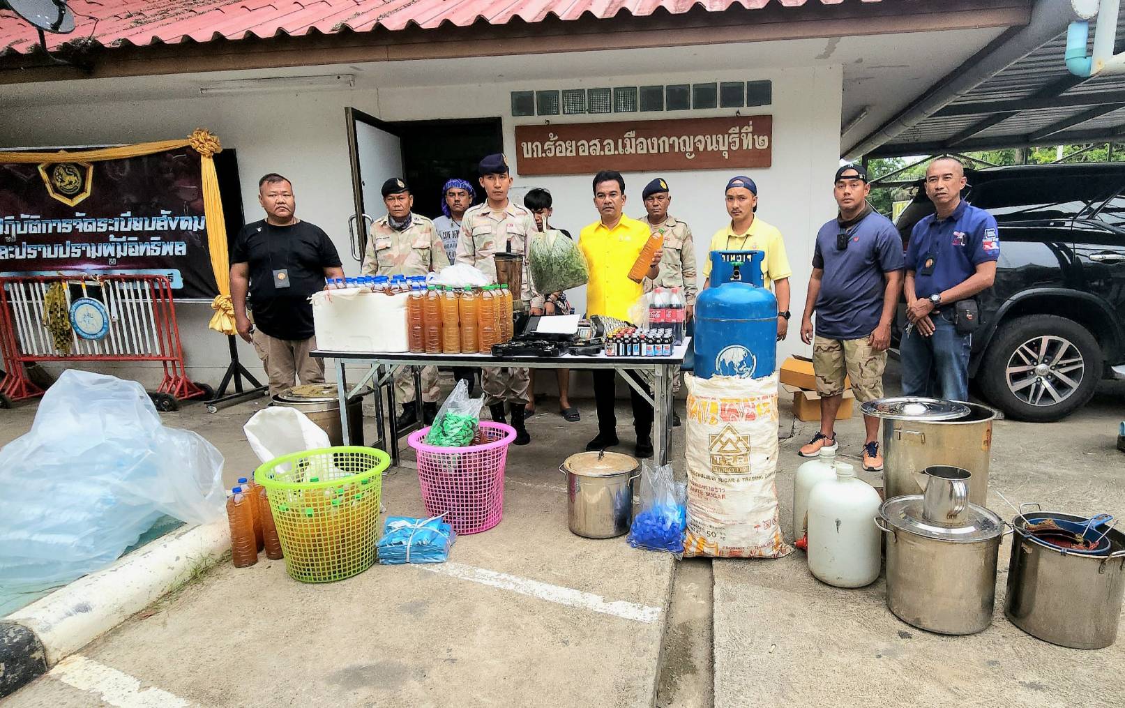 ปกครองกาญจน์ร่วมทหารจับหนุ่มพัทลุง ลักลอบต้มน้ำกระท่อมผสมยาแก้ไอ