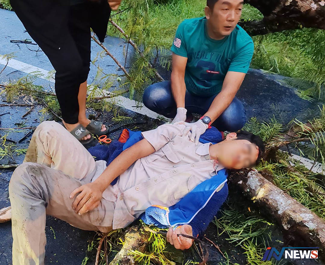 หนุ่ม27ดวงซวยขี่จยย.ไปทำงานโรงแรม ถูกต้นไม้ใหญ่ริมทางล้มทับเจ็บสาหัส