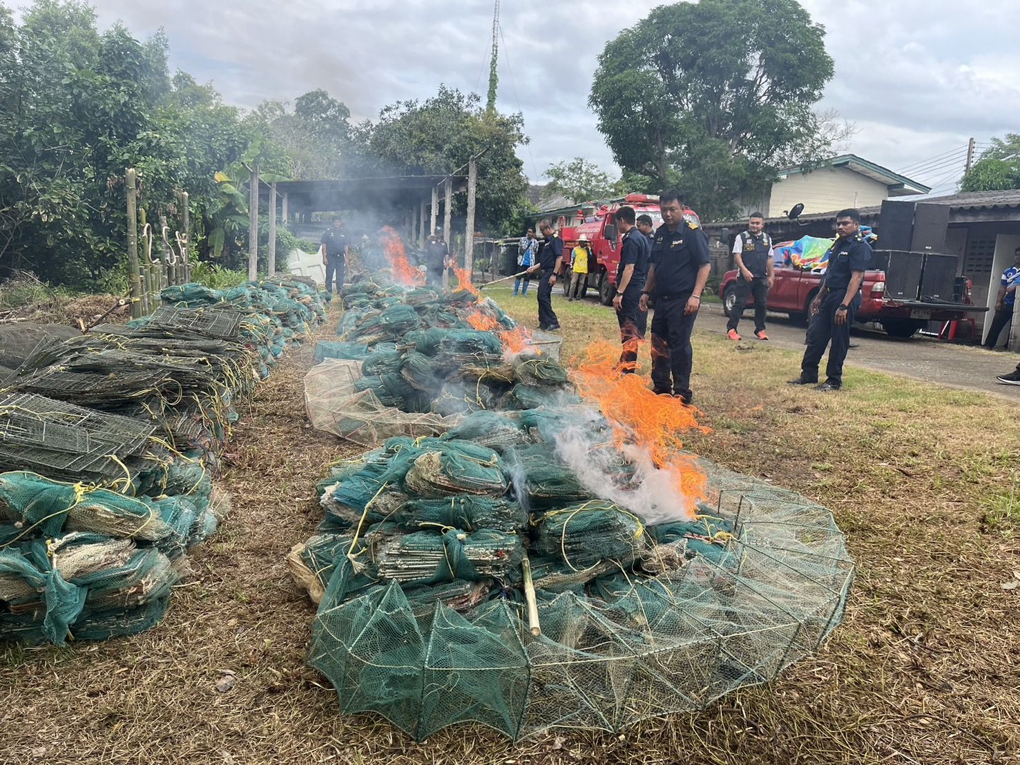 ศูนย์ป้องกันปราบปรามประมงทะเลชุมพร ทำลายเครื่องมือทำประมงผิดกฎหมาย