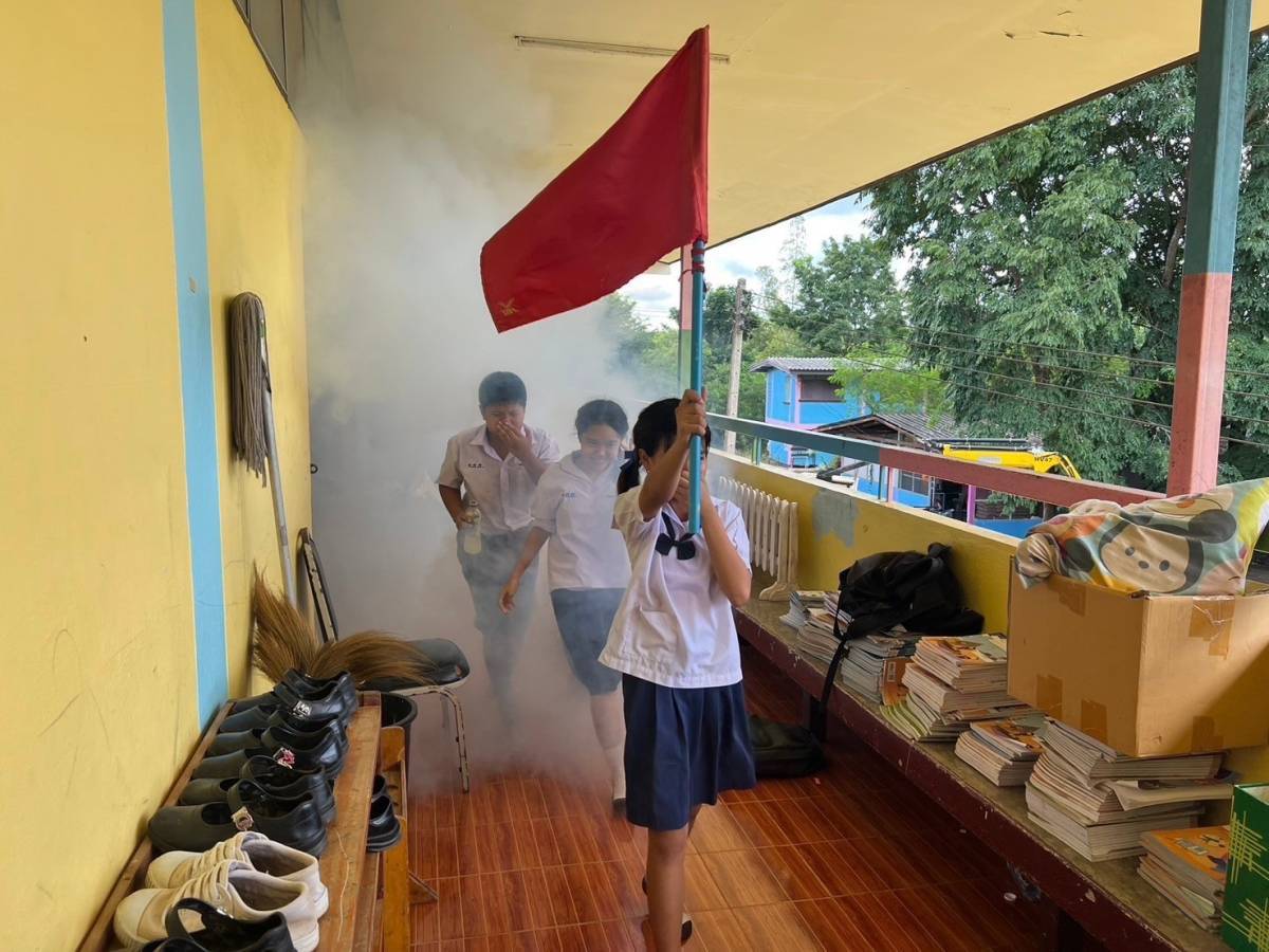 สนง.ปภ.จ.ปราจีนบุรีร่วมอบต.วังท่าช้าง ฝึกแผนเผชิญเหตุในโรงเรียนที่กบินทร์ฯ