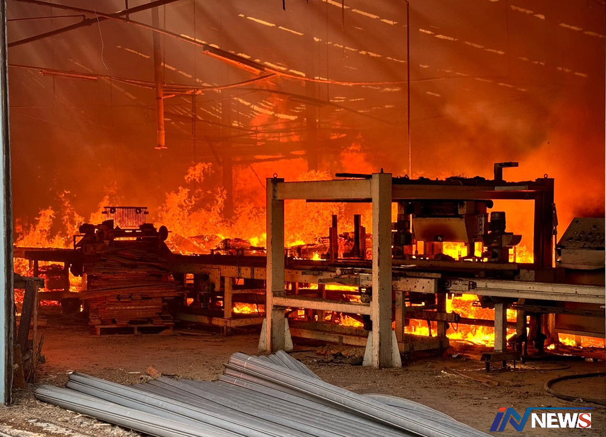 ไฟไหม้โรงงานประกอบเฟอร์นิเจอร์วอด!! มีไม้และทินเนอร์เป็นเชื้อเพลิงอย่างดี