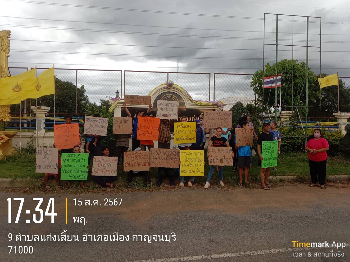 กาญจนบุรี-เหม็นจนทนไม่ไหว !!ชาวบ้านแก่งเสี้ยนรวมตัวชูป้ายหน้าป้าย อบต. ประท้วงกลิ่นเหม็นจากโรงไฟฟ้าชีวมวล