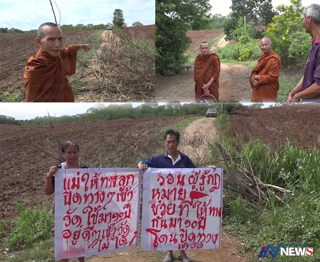 นครราชสีมา-สมัยนี้พระก็อยู่ยากพระ ต้องถือป้ายร้อง จากกรณีแม่ยกที่ดินให้เป็นทางเข้าวัด แต่แม่ตาย ลูกสาวยึดคืนหน้าตา...