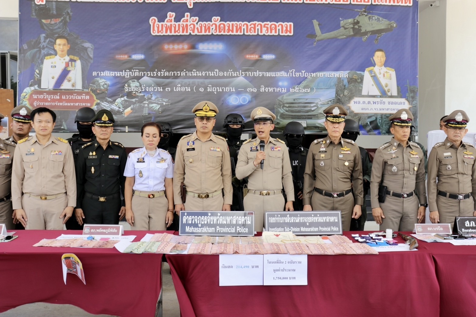 มหาสารคามแถลงผลการปฏิบัติการจับกุม ตรวจค้นยาเสพติด3เดือนยึดทรัพย์23ล.