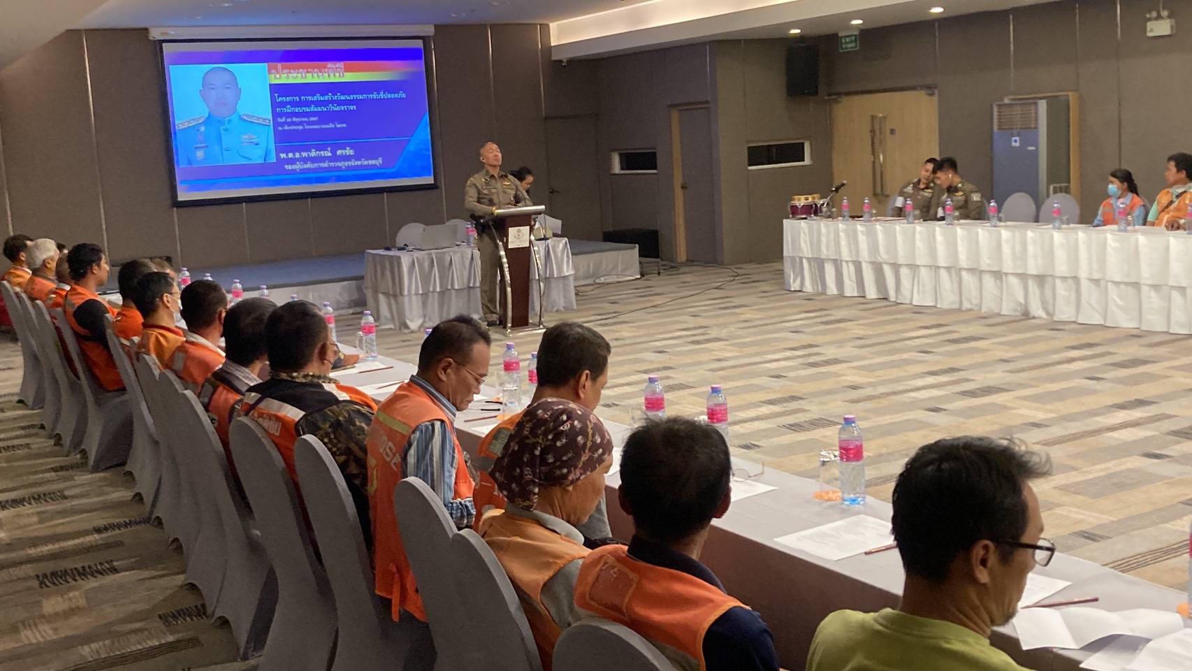 ชลบุรี-รอง ผบก.ภ.จว.ชลบุรี เปิดโครงการ "การเสริมสร้างวัฒนธรรมการขับขี่ปลอดภัย" การฝึกอบรมสัมมนาวินัยจราจรผู้ปร...