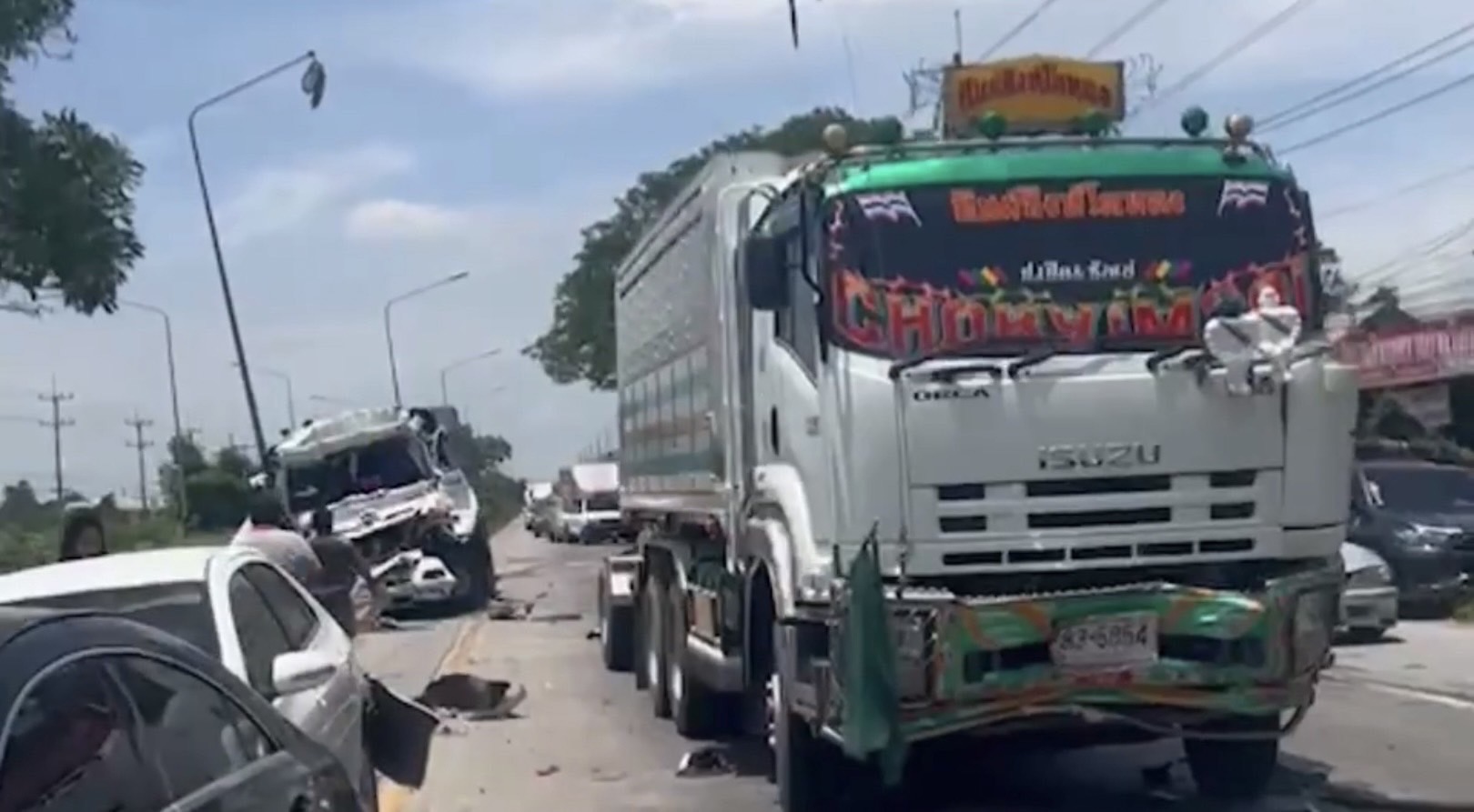 รถบรรทุกน้ำมันเบรกไม่อยู่ชนรูดเก๋งหรู พร้อมรถโชคร้ายพังยับ4คันรวด