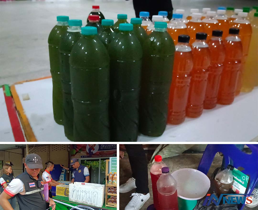 ศรีสะเกษ-ฝ่ายปกครองนำกำลังบุกจับร้านค้าลอบขายน้ำกระท่อมกลางเมืองศรีสะเกษ อึ้งมีทั้งรสชาเขียว-สตอเบอรี่