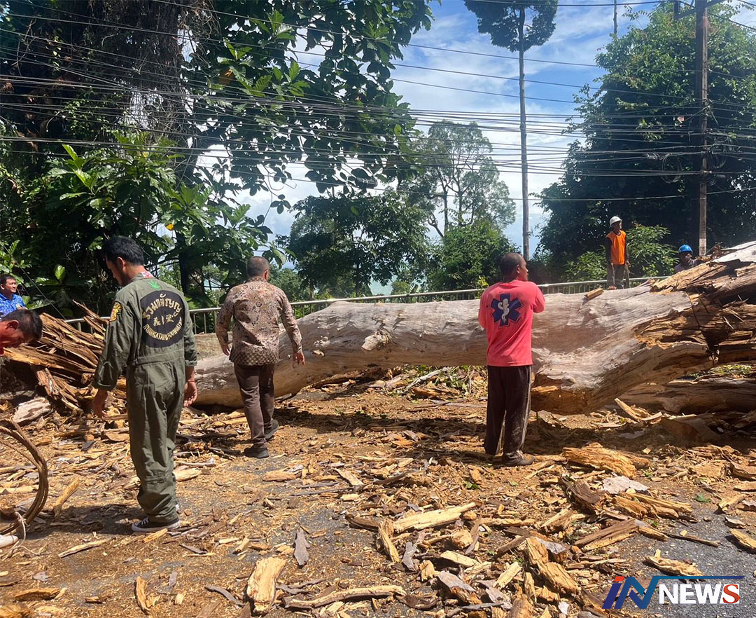 ทต.คึกคักลมพัดต้นไม้ใหญ่หักทับเสาไฟ ล้มนับสิบต้นถนนตะกั่วป่า-ท้ายเหมือง