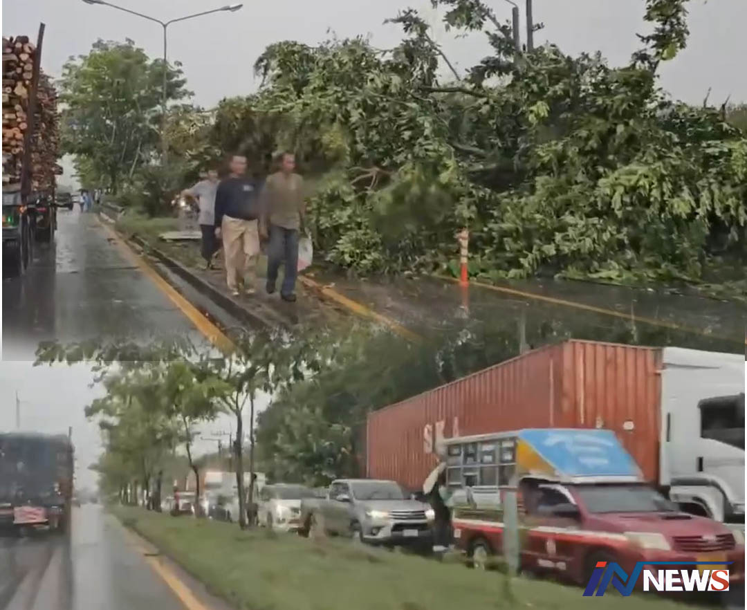 ฝนถล่มพื้นที่บ้านพรุหาดใหญ่ต้นไม้ล้มปิด ถนนหาดใหญ่-สะเดารถติดนับกิโลเมตร