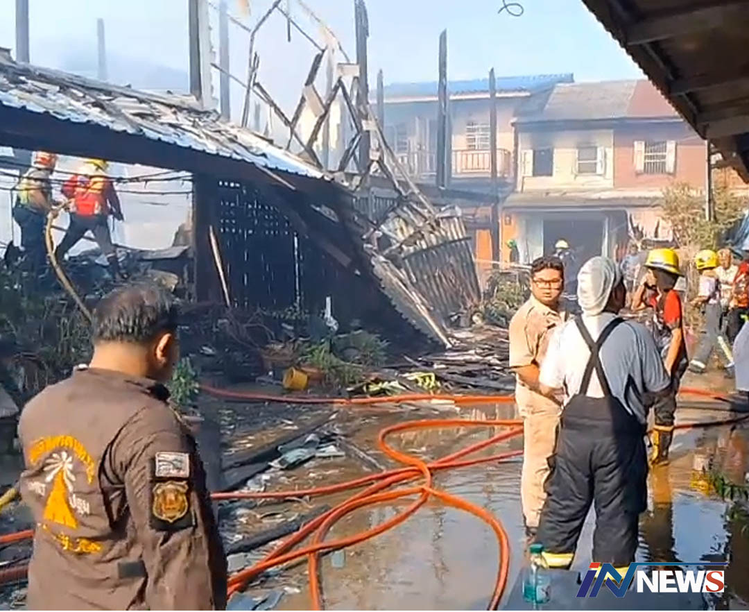 ระทึกไฟโหมไหม้บ้านเก่าตลาดสามพราน เสียหาย10หลังคาเรือน