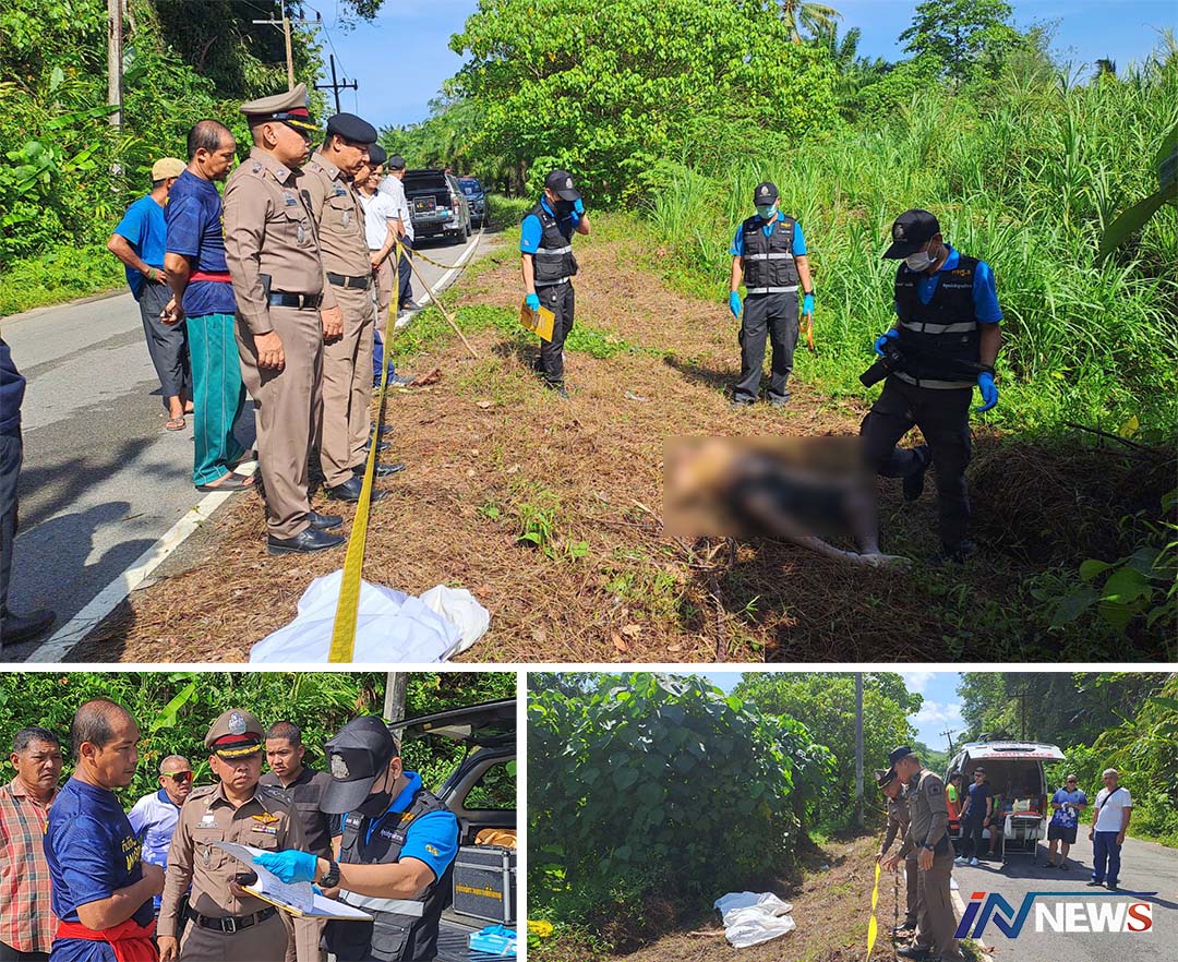 พังงา-ด่วน พบศพชายปริศนาถูกยิงตายอยู่ริมถนนในหมู่บ้านที่หล่อยูง คาดเป็นชาวต่างชาติถูกฆ่าจากที่อื่นแล้วนำศพมาทิ้ง