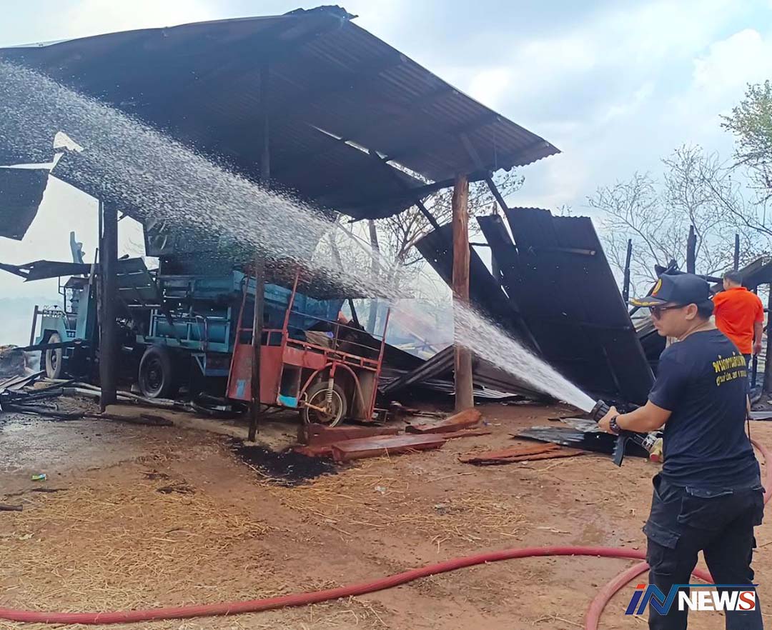 ชัยภูมิ-เกิดเหตุไฟไหม้โรงเลี้ยงกระบือและโรงรถวอดเสียหายพร้อมกันสองหลังหวิดย่างสดกระบือ3ตัวชาวบ้านช่วยตัดเชือกช่วยชีวิตไว...