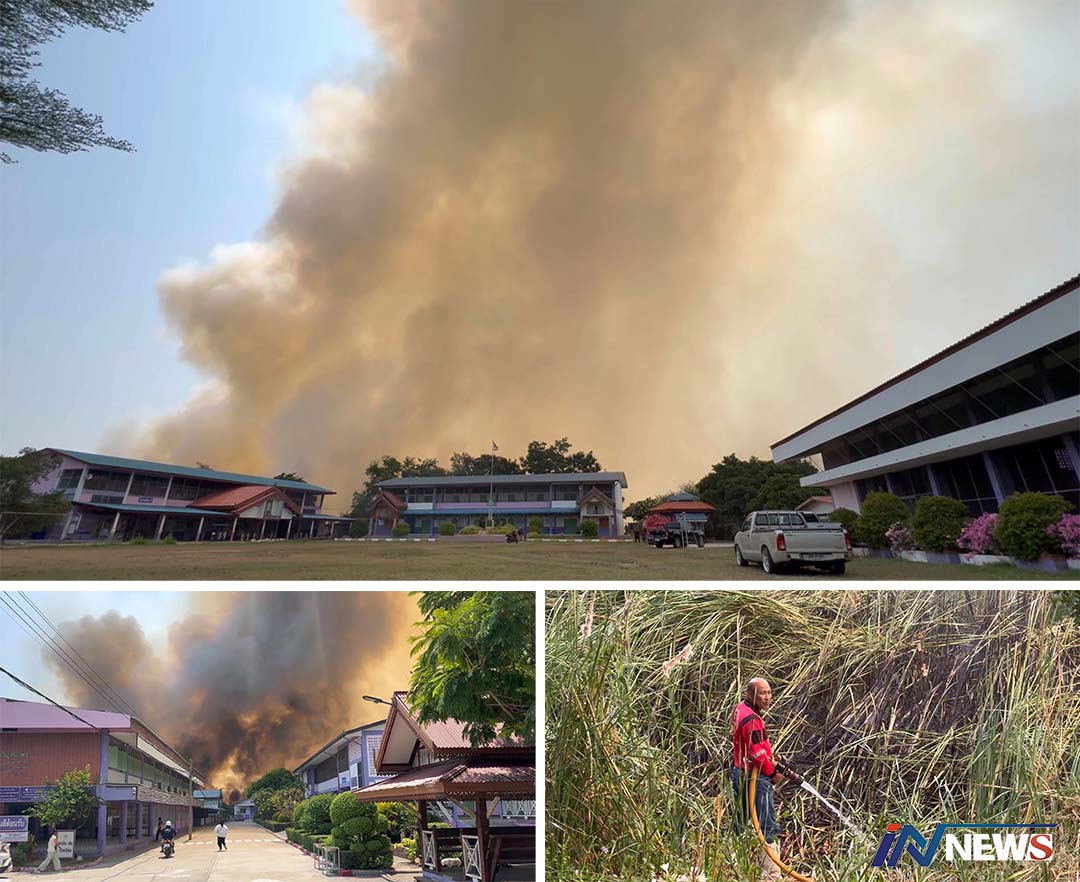 ระทึก!ครูพานักเรียนหนีตายหลังไฟไหม้ ต้นปรือติดหลังโรงเรียนและรพ.บางเลน