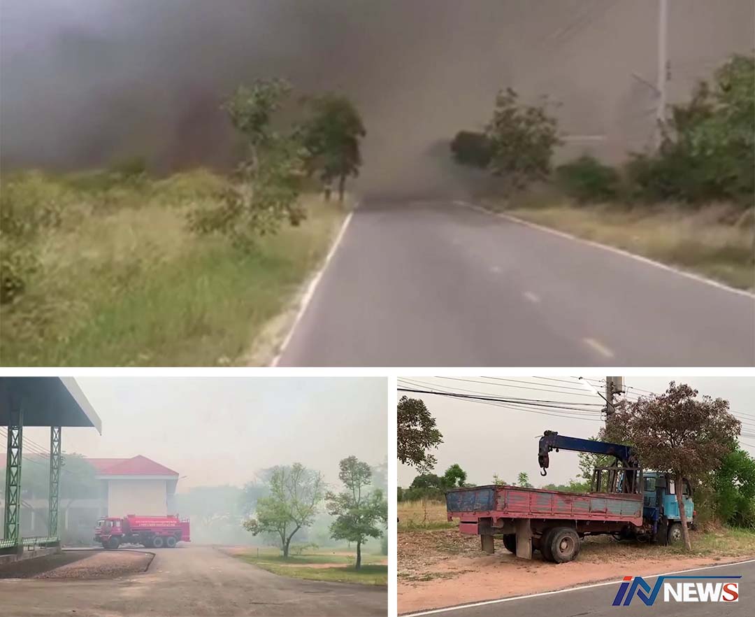นครราชสีมา-ไฟล่ามทุ่งคนเผาหญ้าป่าข้างทางเกิดไฟลามพร้อมสภาพอากาศร้อนจัดหวิดโดนบ้านเรือนประชาชนพบอู่ซ่อมรถโดนไฟไหม้เบาะรถล...