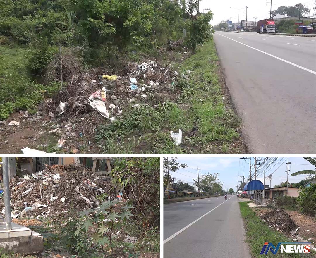 พบกองขยะกองใหญ่ทิ้งริมถนนสายหลัก ทิ้งยาวเป็นกิโลอวดนักท่องเที่ยวต่างชาติ