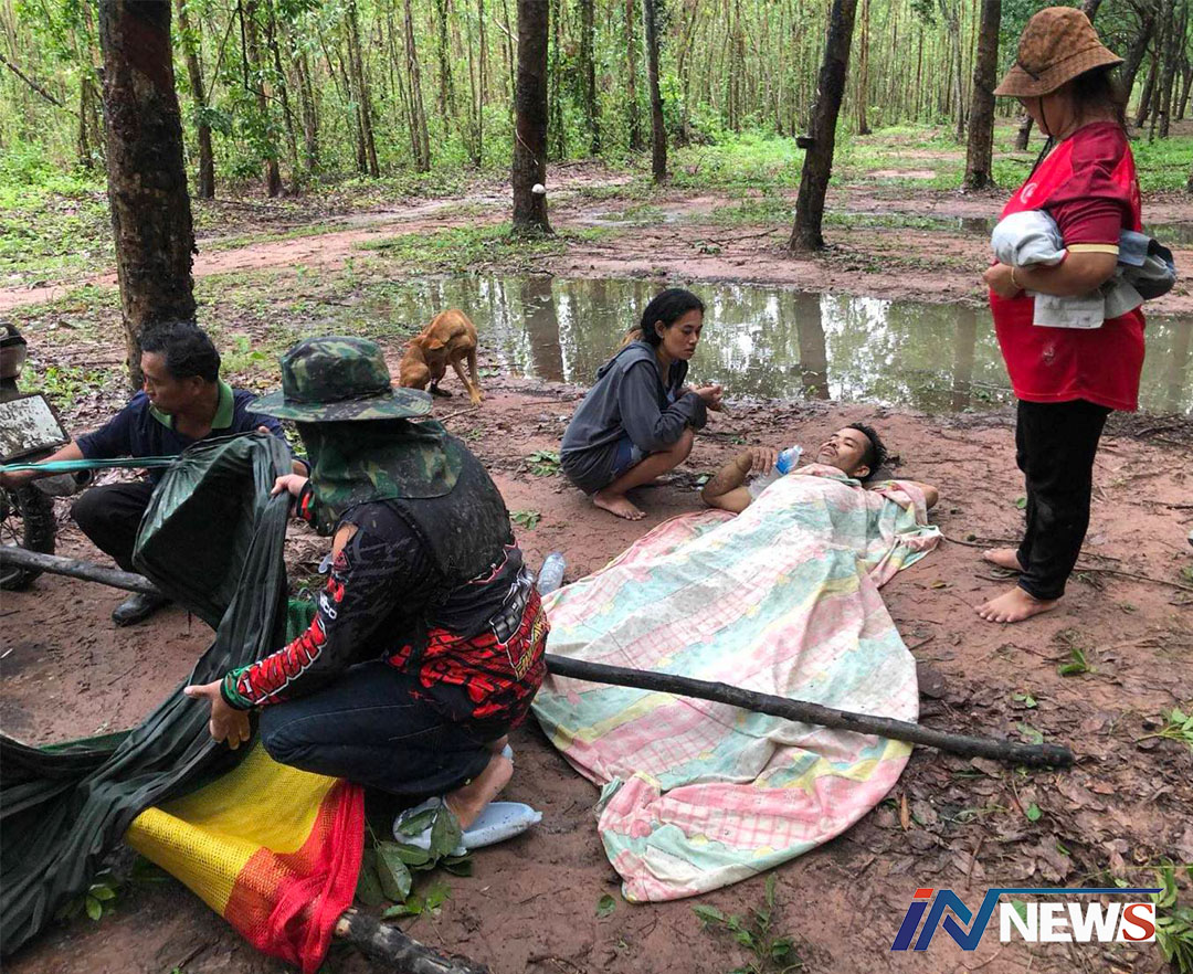 คนท่าตะเกียบขึ้นต้นไม้หนีช้างป่าข้ามคืน ก่อนหมดแรงร่วงตกลงมาบาดเจ็บ