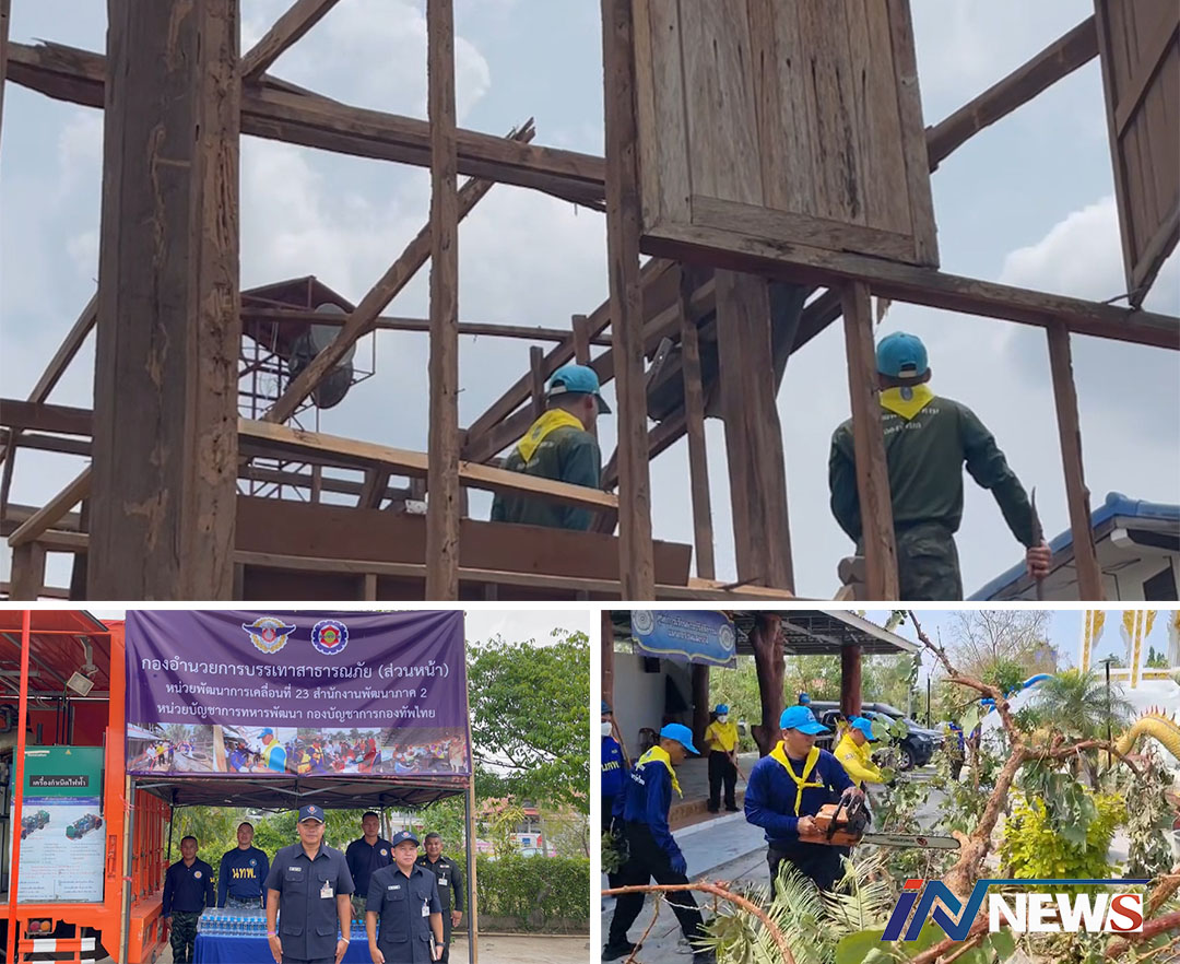 หนองบัวลำภู-ทหารหน่วยพัฒนาการเคลื่อนที่ 23 พร้อมจิตอาสาพระราชทานเข้าช่วยเหลือพี่น้องประชาชนโดนพายุลมฝนพัดถล่ม