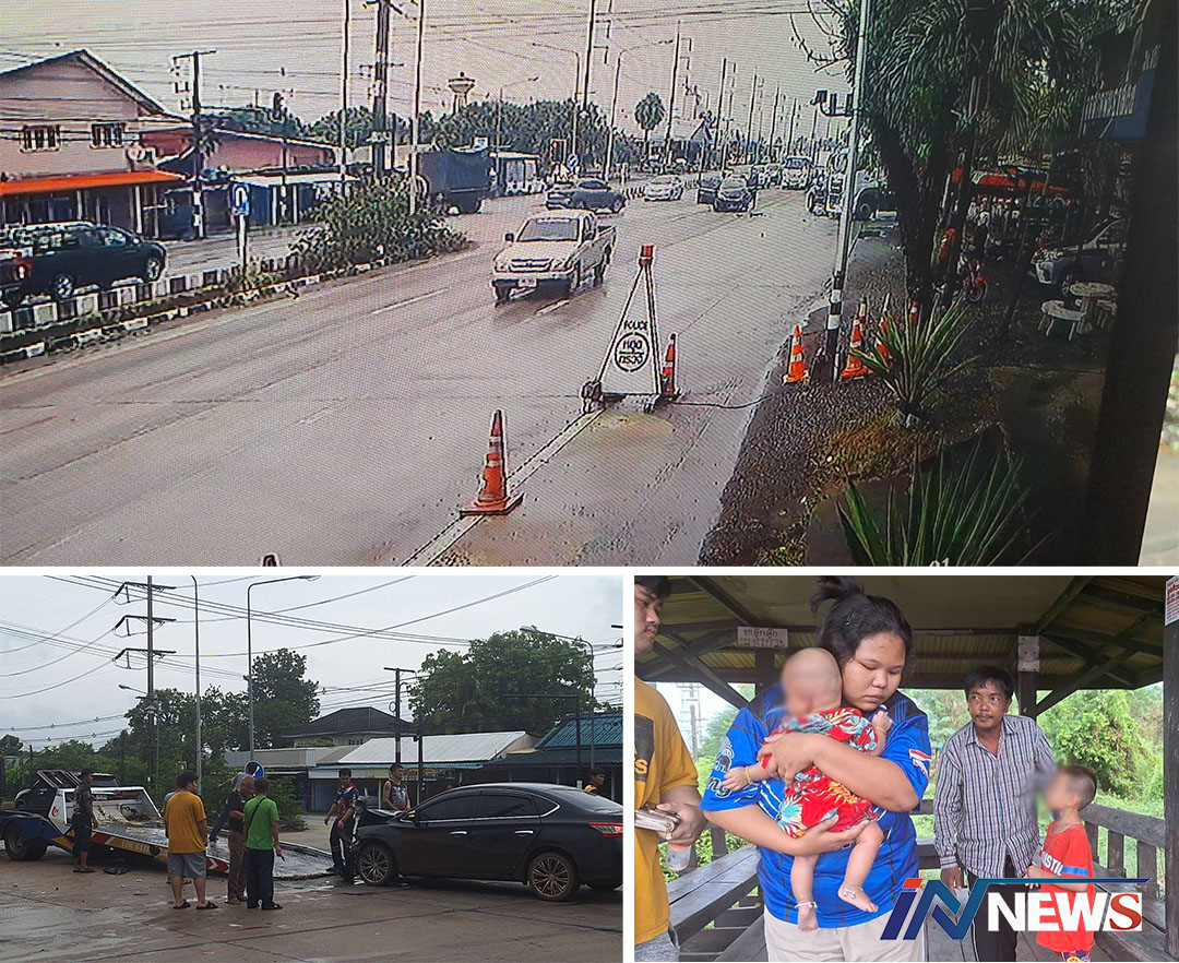 เก๋งฝ่าไฟแดงชนกระบะสี่แยกหนองสังข์ พุ่งชนรถเทเลอร์อีกเด็ก4เดือน-7ขวบเจ็บ