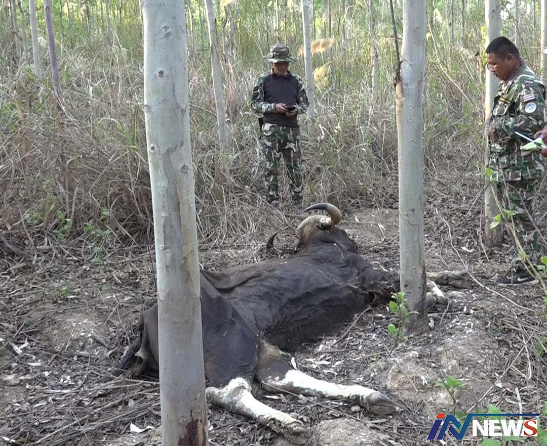 พบกระทิงป่าแก่นอนตายในสวนป่ายูคา ที่วังน้ำเขียวคาดสาหัสจากการต่อสู้กันเอง