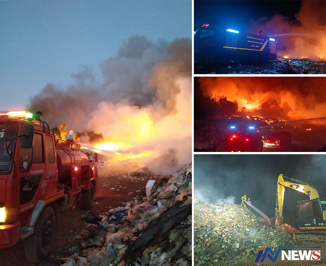 ไฟไหม้กองขยะบ้านหนองหอยกว่า17ไร่ คาดร้อนจัดตั้งแต่บ่ายจรดดึกยังดับไม่ได้