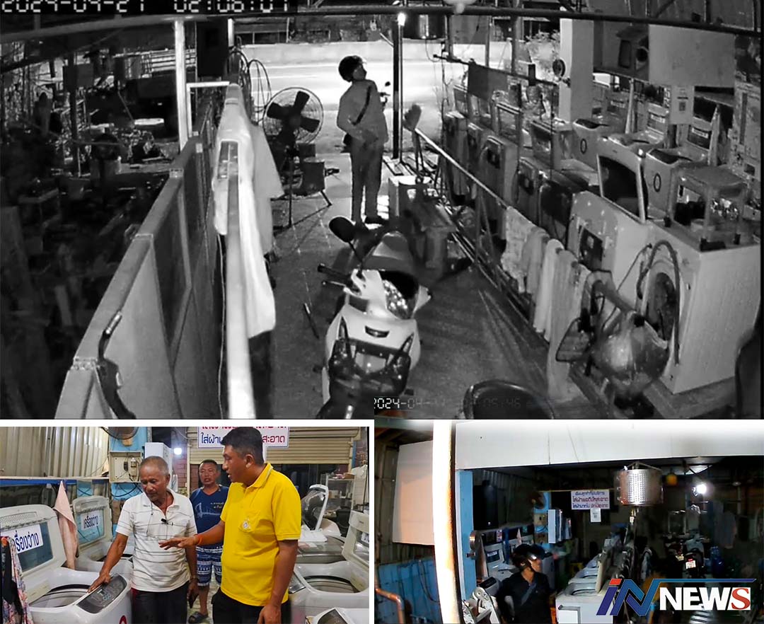 วงจรปิดจับภาพคนร้ายลักเสื้อผ้า-ถังแก๊ส ร้านซักผ้า24ชั่วโมงวอนเร่งจับคนร้าย