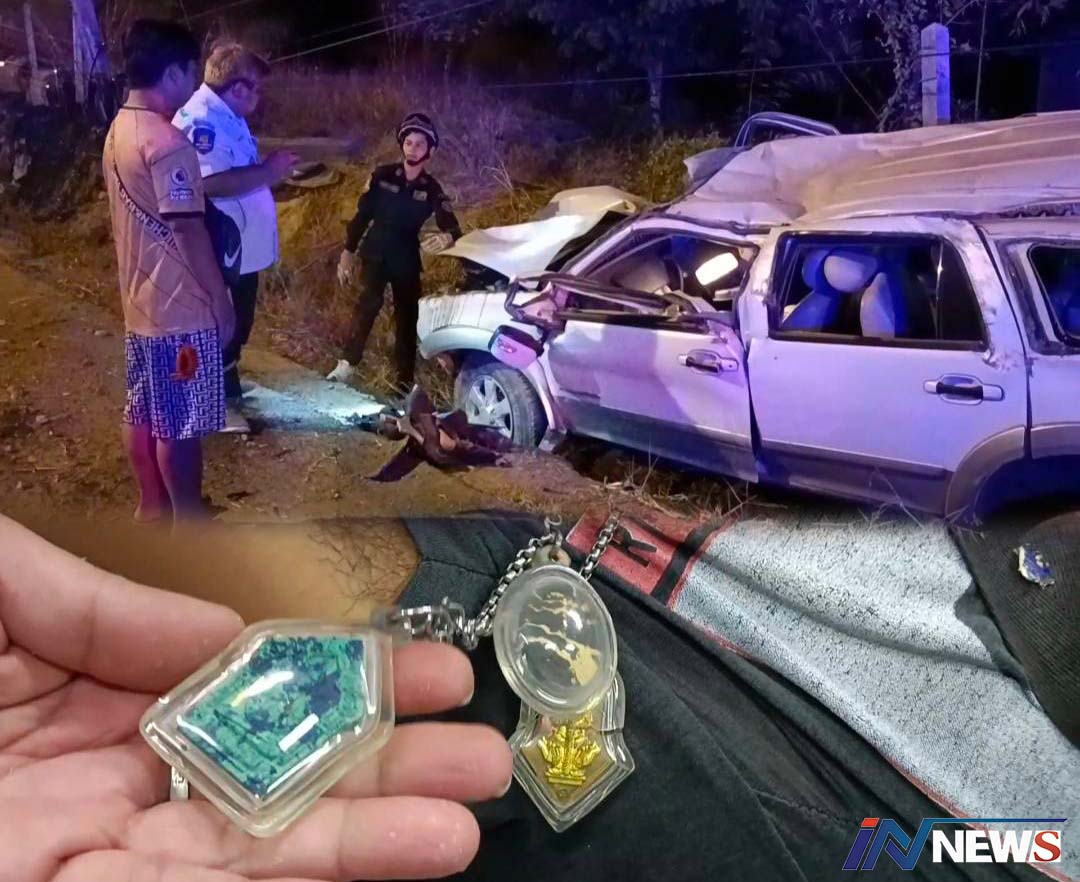 อ้างมีพระดี!หนุ่มวัย28ปีขับMU7กลับบ้าน ชนเสาไฟขาด2ท่อนรถพังยับแต่คนรอด