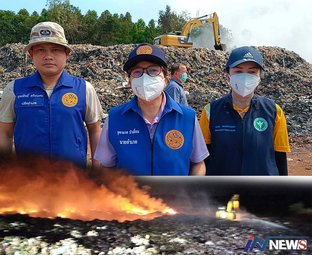 คืบ!ไฟไหม้บ่อขยะบ้านหนองหอยดับแล้ว นอภ.-สจจ.ลงตรวจสั่งดูแลผู้ย้ายออก
