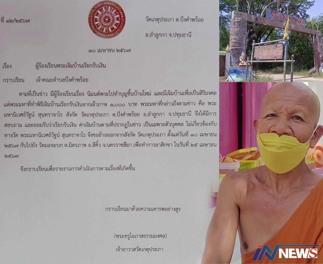 นครราชสีมา-เพจดังแชร์หนังสือกรณีพระวัดดังเจิมบ้านเรียกเก็บเงินชาวบ้าน 1 พันบาทก่อนสารภาพก่อนหนังสือออกให้ลาสิขาที่วัดโคร...