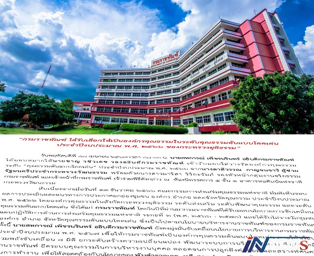 'ราชทัณฑ์'ได้รับเลือกเป็นองค์กรคุณธรรม ในระดับคุณธรรมต้นแบบโดดเด่นปีงบ66