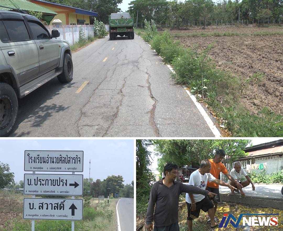 ชาวหนองงูเหลือมร้องสื่อหวั่นถนนยุบตัว หลังเกิดดินสไลด์วอนอบต.ซ่อมแซมด่วน