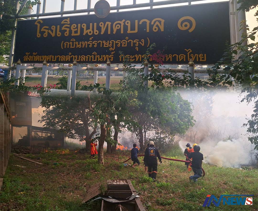 ร้อนจัด! เกิดไฟไหม้]6dลามเข้าโรงเรียน ทต.กบินทร์นำรถดับเพลิง20คันช่วยดับ