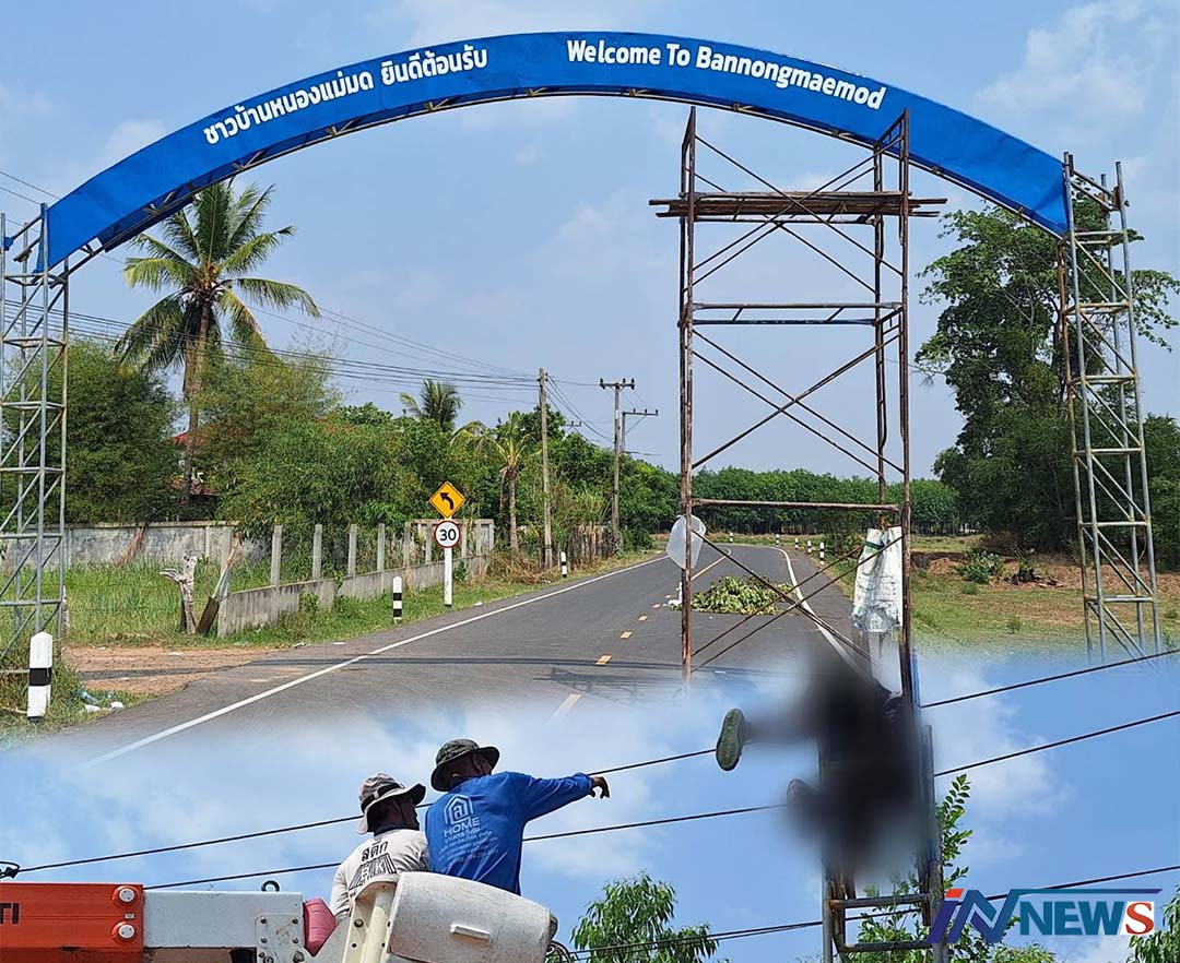 สลด!ลุงชาวสตึกเร่งซ่อมป้ายเข้าหมู่บ้าน ก่อนสงกรานต์ถูกไฟช็อตดับคาซุ้ม