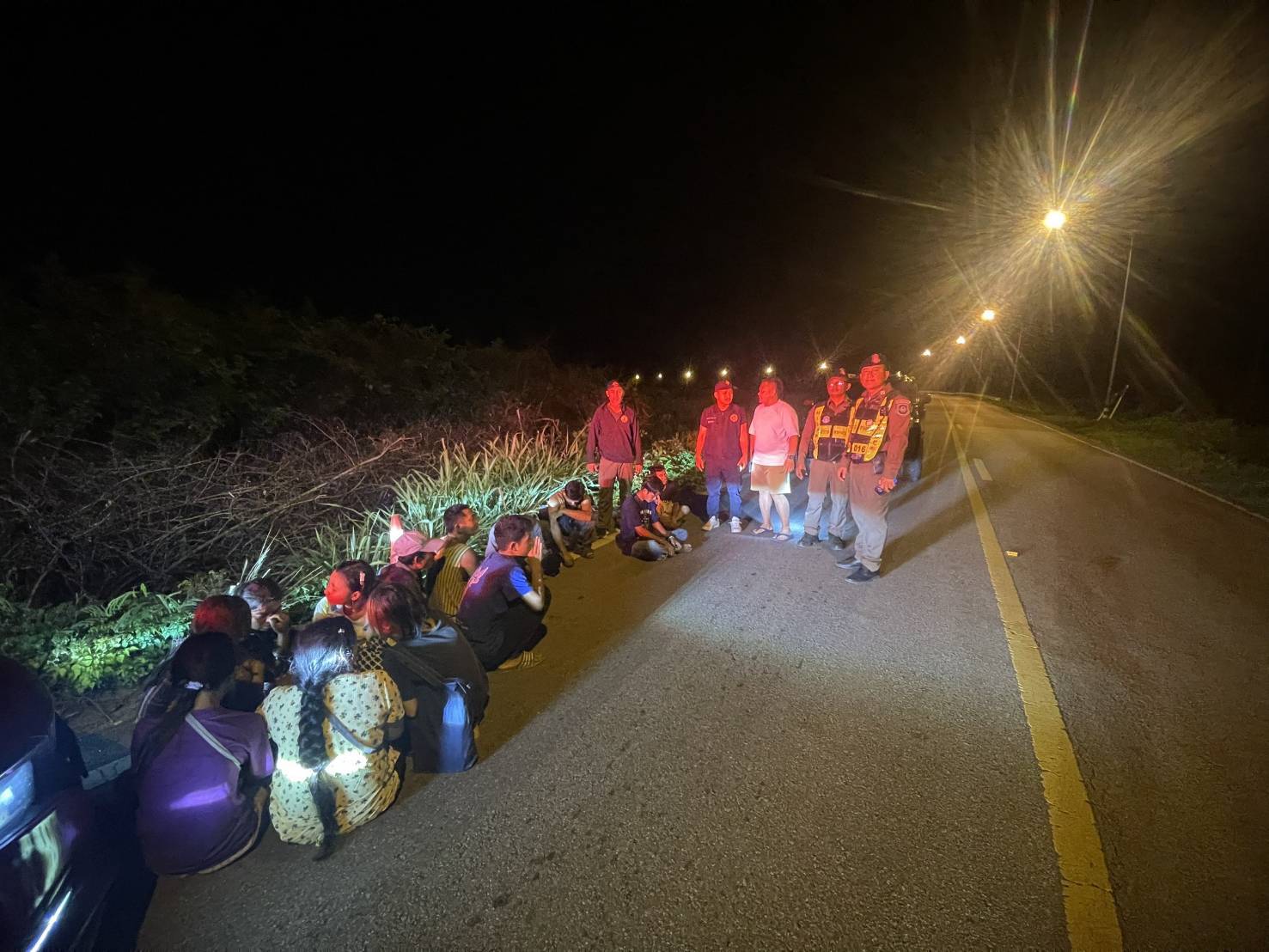 ตำรวจไล่ระทึกรถหรู!ขน10แรงงานพม่า แหกด่านหนีสุดท้ายเสียหลักตกข้างทาง