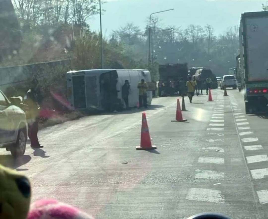 รถบัสคณะครูจากสุรินทร์คว่ำบนเขาโทน เจ็บ13รายโชคดีไม่มีใครเสียชีวิต