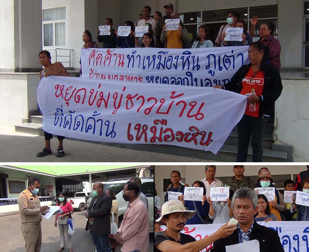 มุกดาหาร – ชาวบ้านในตำบลบางทรายใหญ่ และตำบลมุกดาหาร ยื่นหนังสือคัดค้านการออกประทานบัตร บริษัท สิงโต เอ็นจิเนียร์ จ...