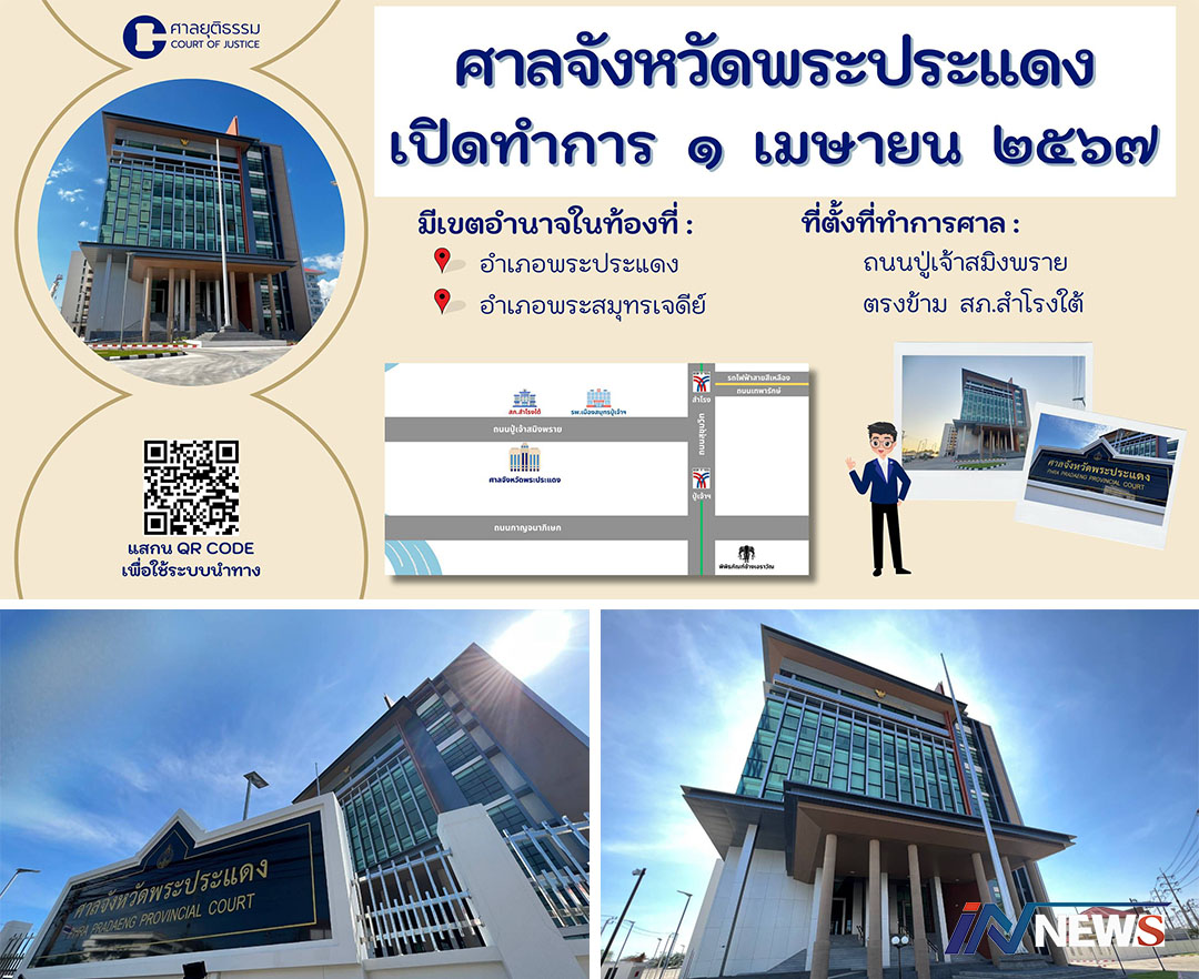 กรุงเทพฯ-พร้อมแล้ว เปิดทำการ “ศาลจังหวัดพระประแดง” 1 เม.ย.67 จัด 14 บัลลังก์รองรับคดีแพ่ง-อาญา เขต อ.พระประแ...