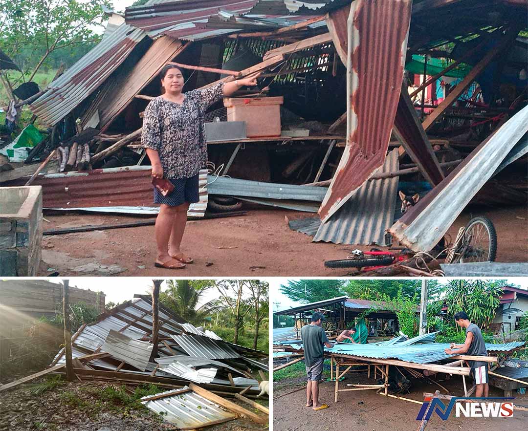 ระวังภัย!พายุหมุน2วันต่อเนื่องพัดบ้านพัง ล่าสุด22หลังคาเรือน.ใน4หมู่บ้าน