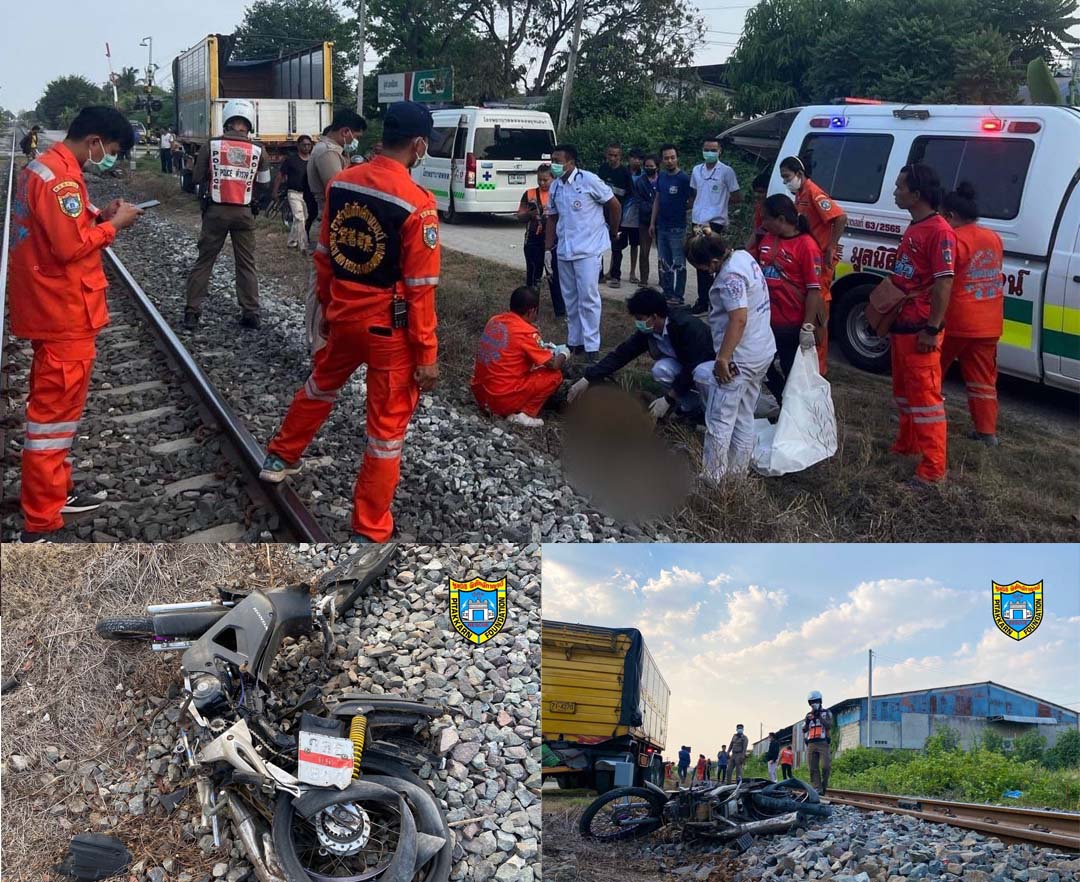 โจ๋กาญจน์วัย19ขี่จยย.แหวกไม้กั้นรถไฟ ถูกขบวนม้าเหล็กพุ่งชนดับคาที่