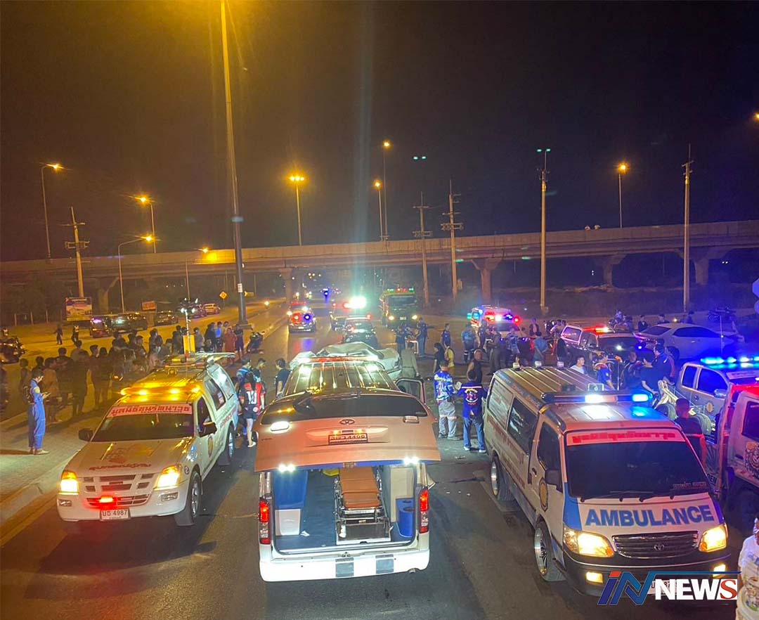 เก๋งซิ่งประสานงานตูมเดียวเจ็บ6ดับ1ราย คาดหลับในพุ่งข้ามเลนชนรถวิ่งสวน