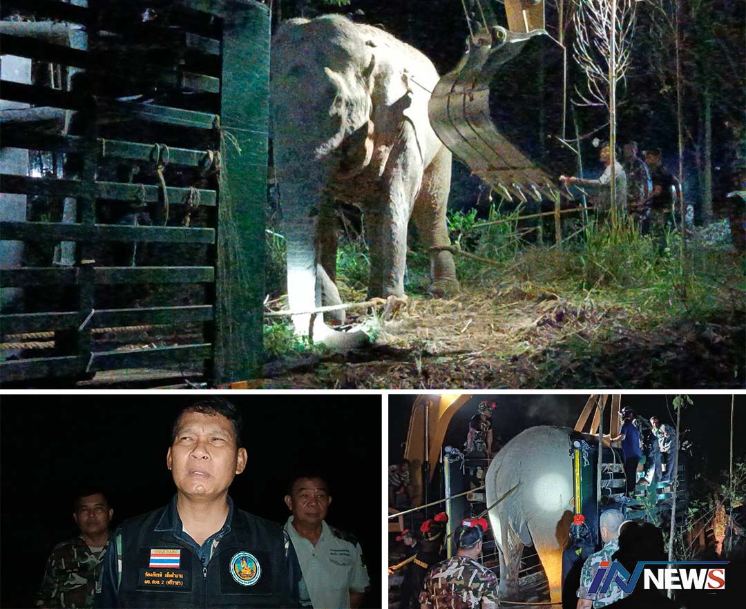 จนท.อุทยานจับสีดอโหนก'สิบล้อ'ช้างป่า เขาอ่างฤาไนกลับถิ่นแปดริ้วกลางดึก
