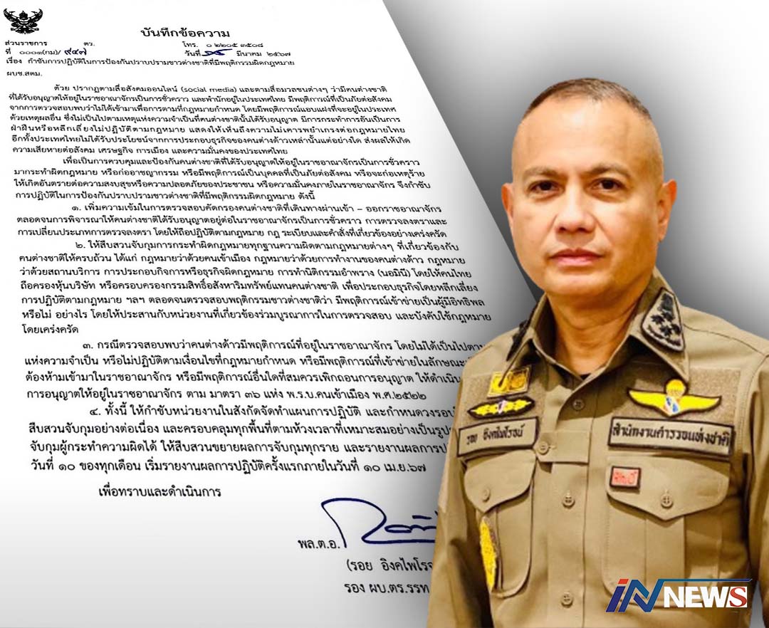 'รอย'ร่อนหนังสือคำสั่งเชือดถึงผบช.สตม. กรณีคนต่างชาติมีพฤติกรรมเป็นภัยสังคม