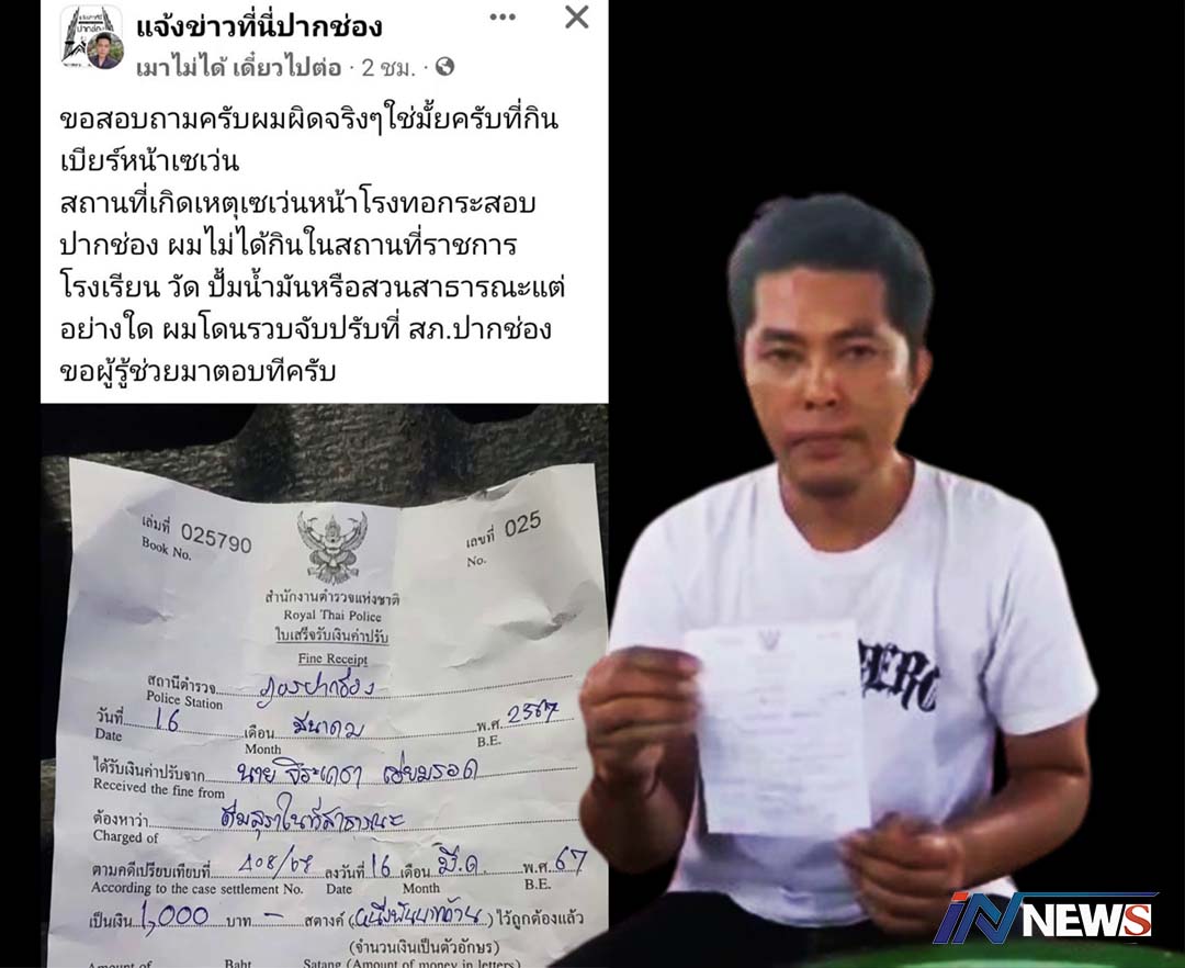 นครราชสีมา-หนุ่มสุดงงโพสประสบการณ์ซื้อเบียร์นั่งกินหน้าร้านสะดวกซื้อก่อนโดนตำรวจจับดื่มสุราในที่สาธารณะเสียค่าปรับไป 6 ร...