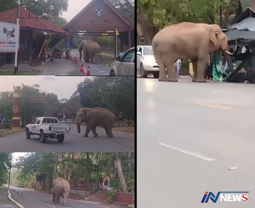 เปิดคลิปพลายด้วนช้างป่าเขาใหญ่ลุยร้าน ปล้นผลไม้ร้านค้าริมทางก่อนเดินจากไป