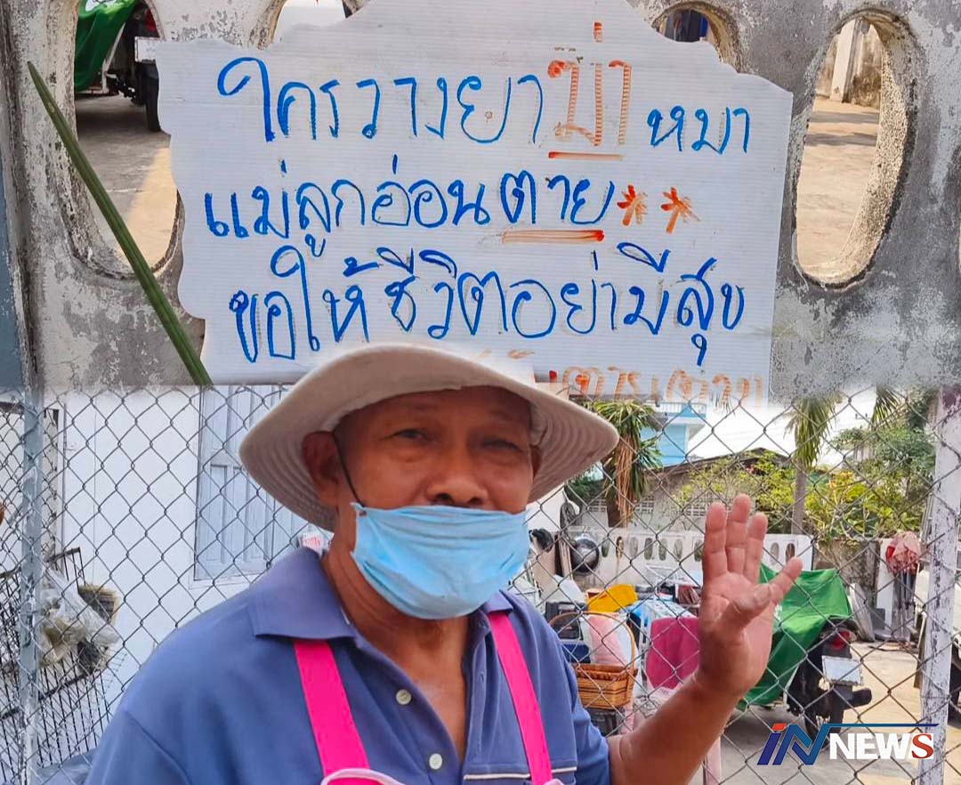 คนขายกล้วยปิ้งติดป้ายประณามคนใจร้าย วางยาฆ่า'แมงภู่'หมาแม่ลูกอ่อนแสนรัก