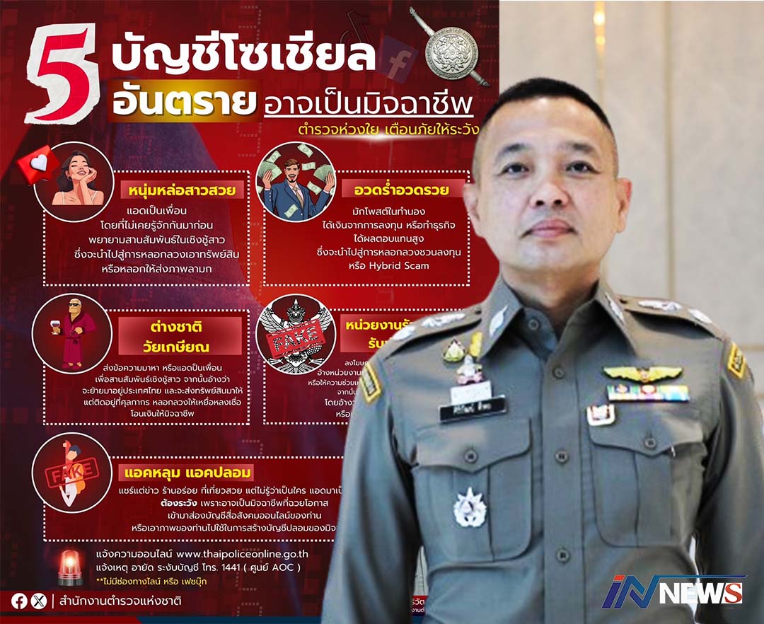 ตร.เตือนปชช.ระวัง5บัญชีโซเชียลอันตราย แนะไม่รับแอด-ไม่คุยแชต-ไม่โอนเงิน