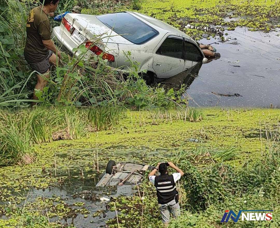 สิงห์บุรี-เกิดอุบัติเหตุรถเก๋งกับรถกระบะ เฉี่ยวชนกันเสียหลักพุ่งตกลงน้ำริมทาง เสียชีวิต 5 ศพ หลอน! ก่อนรถพุ่งลงน้ำ...